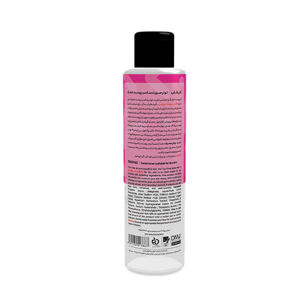 تونر پوست خشک تاپشاپ بدون سولفات و پارابن، غنیشده با ترکیبات آبرسان و نرمکننده مانند عصاره جوانه گندم، پامچال و خیار، رطوبت و تغذیه عمیق پوست را فراهم میکند و به تسکین پوستهای حساس کمک میکند. این محصول پوست را نرم، شاداب و سالم نگه میدارد.